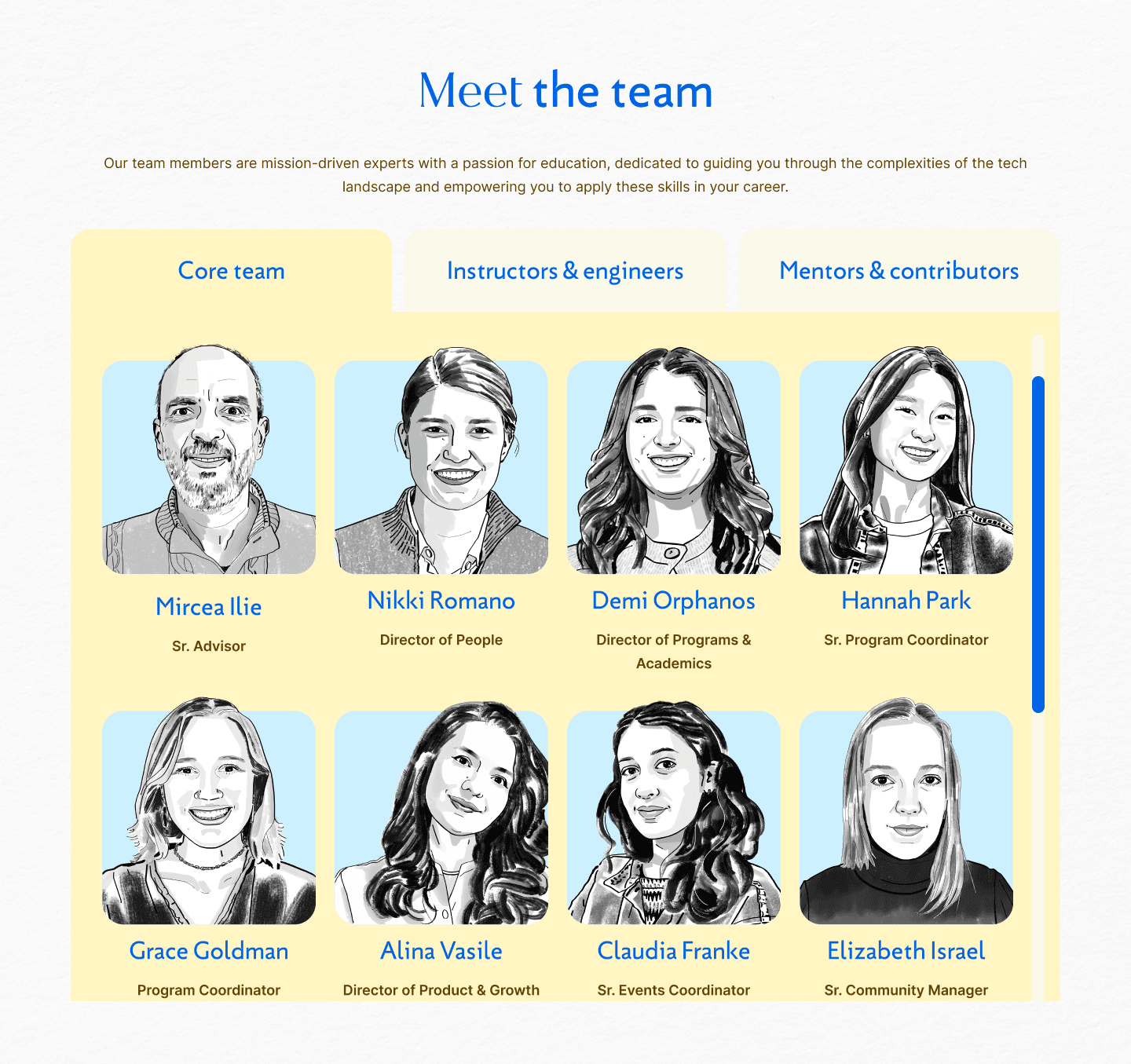 Director of Product and Growth, Illustrator, Copywriter, Developer, Stakeholders
